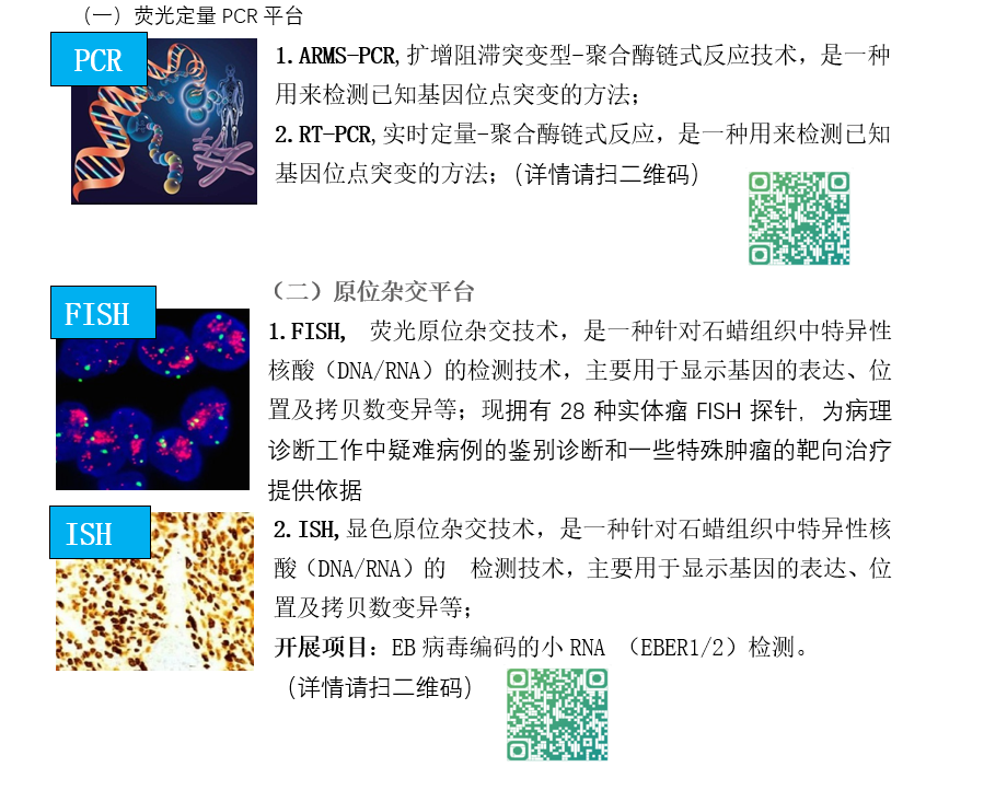 分子实验室现有三大技术平台,包括荧光定量PCR、原位杂交平台、一代测序平台。